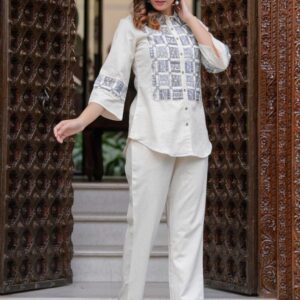 Embroidered Shirt Collar Neck Shirt With Trousers Co-Ords
