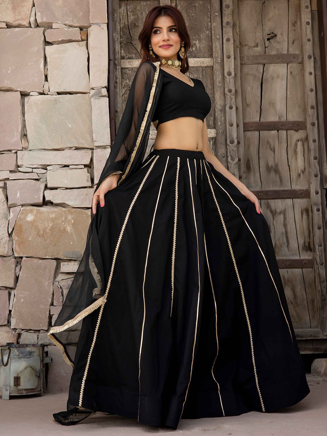 Black and gold-toned solid lehenga choli with dupatta, gotta patti