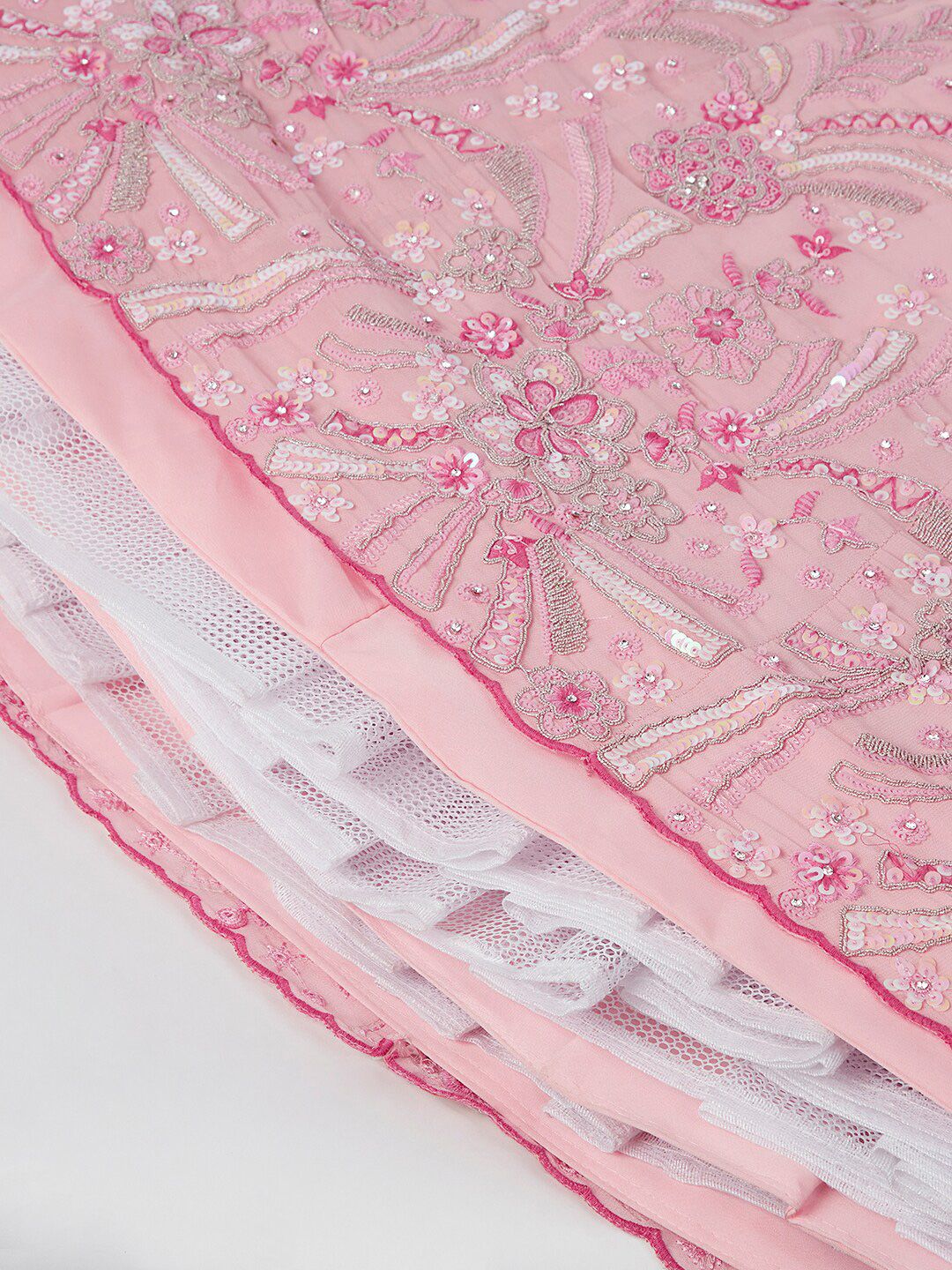 Pink embroidered lehenga choli with dupatta, sequinned