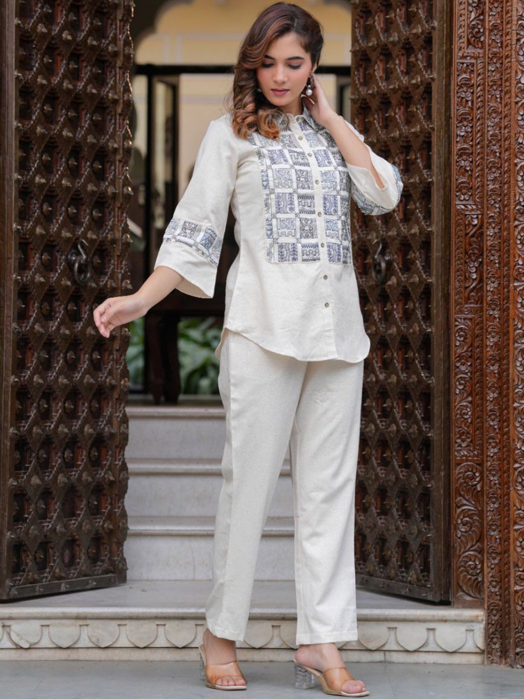 Embroidered Shirt Collar Neck Shirt With Trousers Co-Ords