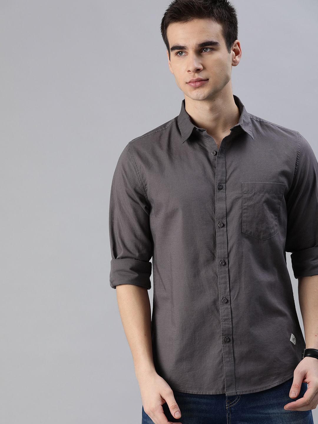 Roadster Men Charcoal Regular Fit Solid Casual Shirt