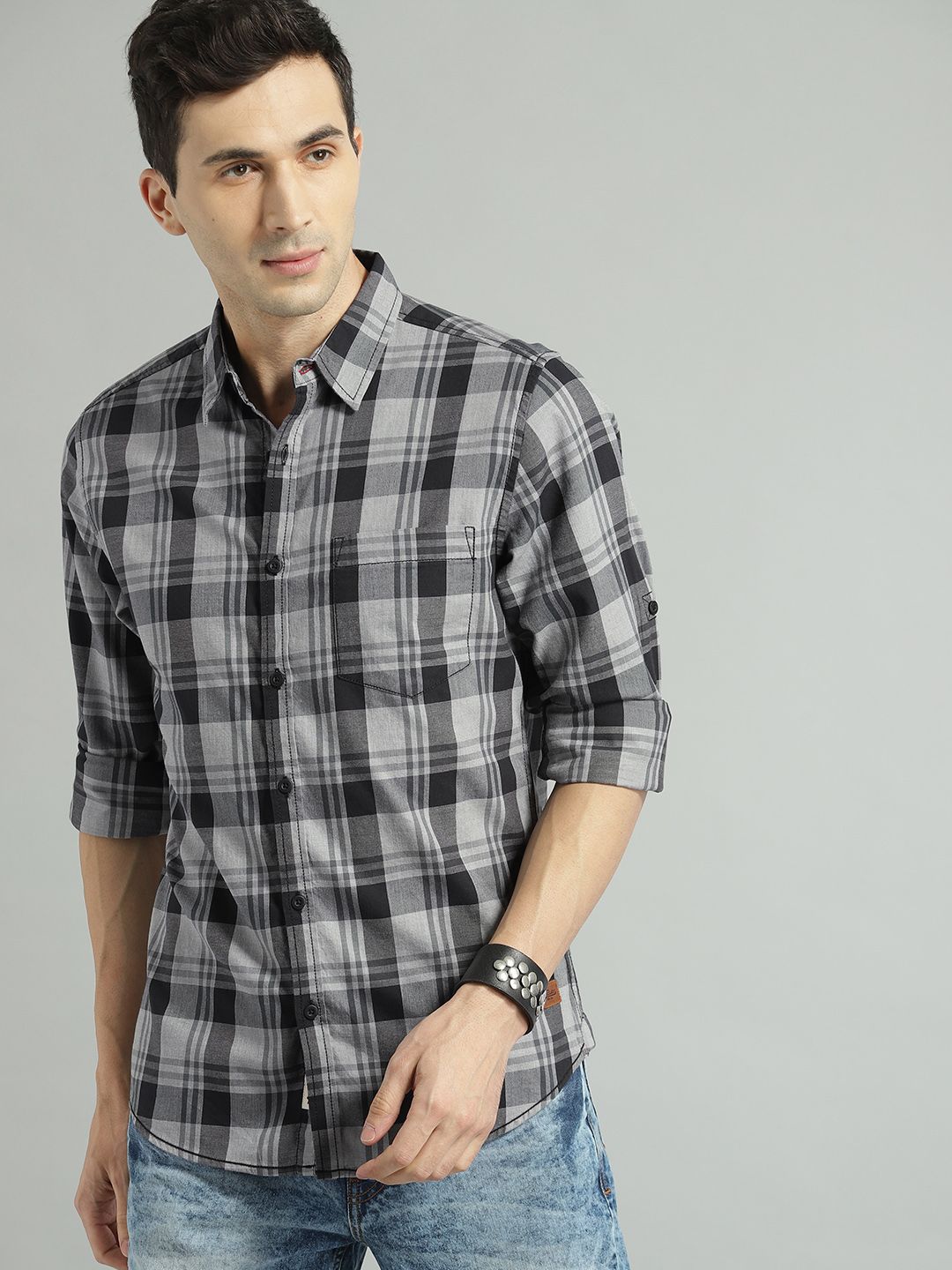 Be the first to review “Roadster The Lifestyle Co Men Black & Grey Regular Fit Checked Casual Shirt” Cancel reply